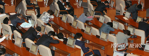 12ÀÏ ¿ÀÀü ±¹È¸ º»È¸ÀÇÀå¿¡¼ Çѳª¶ó´ç ÀÇ¿øµéÀÌ Á¤ºÎÀÇ Ã߰濹»ê¾È 󸮸¦ ±â´Ù¸®´Ù°¡ »õº® 4½Ã°¡ °¡±î¿ö¿ÀÀÚ ÇǷο¡ ÁöÃÄ ÀáÀ» ûÇϰí ÀÖ´Ù. ÇǰïÇØ¼ ÂÊÀáÁÖ¹«½Ã´Â ±¹È¸ÀÇ¿ø´Ôµé......º¸±âÁÁÀº »çÁøÀº ¾Æ´Õ´Ï´Ù...½½ÇÂ